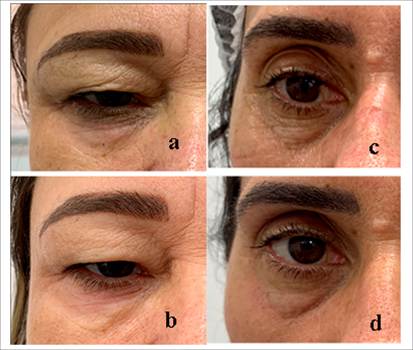 A etiopatogenia do processo de envelhecimento da face é multifatorial, fisiológica, progressiva e afeta todas as camadas da pele. Esse processo ainda se associa à senescência da estrutura óssea, muscular e ligamentar. A região periorbital é uma das principais áreas a mostrar os sinais de envelhecimento, destacando como preocupações as rítides e a flacidez(3,4).A área periorbital possui características específicas de envelhecimento. Há uma complexidade de sinais clínicos incluindo rugas, irregularidades na textura, elastose, discromias, que levam homens e mulheres procurarem intervenções estéticas(5).