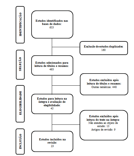 Destaca-se que para seleção das publicações, seguiram-se as recomendações do Preferred Reporting Items for Systematic Reviews and Meta-Analyses - PRISMA (10), conforme apresentado na Figura 1, a seguir.