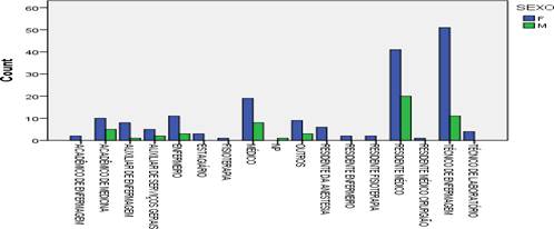 Vale ressaltar que a enfermagem é vista como uma categoria feminina, pois as mulheres correspondem a 84,6% da equipe, enquanto os homens representam apenas 15% da categoria. Desse modo, o predomínio do sexo feminino nos achados da pesquisa se torna explícito, pautado em pesquisa realizada pela Fundação Osvaldo Cruz em parceria com o Conselho Federal de Enfermagem. O mais amplo levantamento sobre uma categoria profissional já realizado na América Latina é inédito e abrange um universo de 1,6 milhão de profissionais(13).