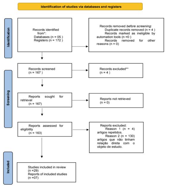 Na BVS REGIONAL, foram recuperados 12 artigos da base LILACS (Literatura Latinoamericana e do Caribe em Ciências da Saúde), 27 artigos da MEDLINE, 27 artigos da BDENF (Biblioteca Virtual em Saúde de Enfermagem), Foram recuperados 37 artigos e, selecionados a princípio, 29 artigos para leitura de seus resumos, sendo elegíveis para o desenvolvimento deste trabalho 07 artigos. Os idiomas foram libres. Quadros 2, 3, 4, 5 e 6.