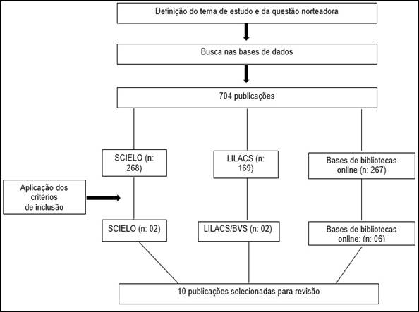 Encontrou-se aproximadamente 704 publicações distribuídas nas bases online, dos quais após utilizar os critérios de inclusão, descritores e leitura dos trabalhos, 10 atenderam as especificações e foram selecionados para compor o presente artigo.