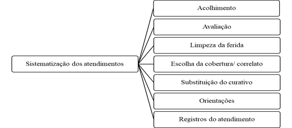 O cuidado ao paciente com feridas variou de acordo com etiologia da lesão, das condições clínicas do sujeito e das diretrizes específicas de cuidados da instituição. Nesta circunstância se fez necessário estabelecer um processo assistencial sistematizado e pautado em protocolos operacionais, com avaliação clínica do paciente e definição dos cuidados para atender suas demandas e individualidades.