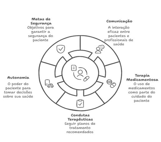Para o alcance do cuidado seguro é indispensável que todos os atores participantes do processo estejam bem informados e envolvidos com o percurso terapêutico. Estudos ressaltam que os pacientes podem participar nas etapas do processo assistencial, contribuindo de forma efetiva para a promoção de melhores resultados, como nas práticas de aprendizado, avaliação e adaptação do seu estado de saúde(2,3).