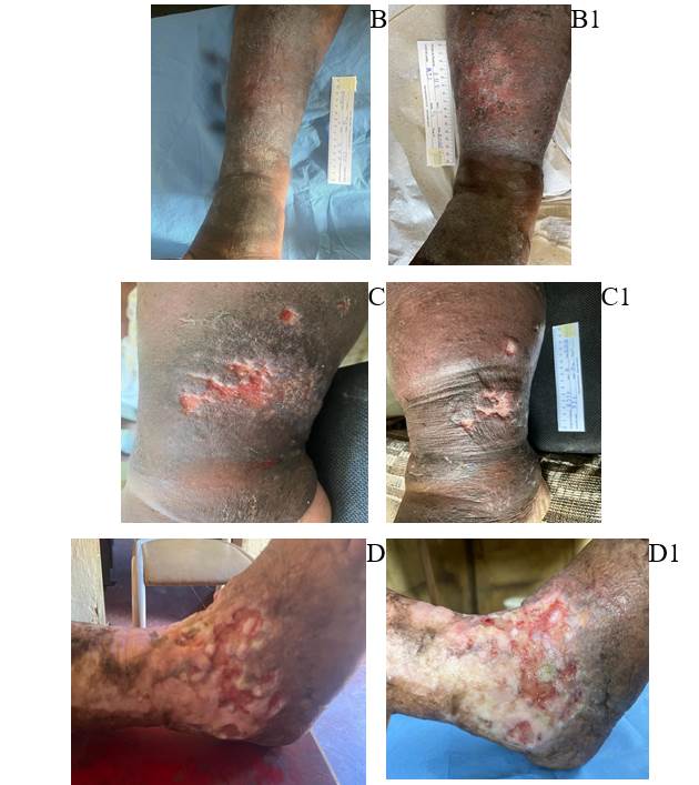 Neste estudo foi realizada a laserterapia com um número de quatro pacientes, mostrando a eficácia do laser enquanto terapia adjuvante para o tratamento de feridas. Similarmente, estudo retrospectivo apresentou que o ao utilizar o laser no tratamento de feridas cutâneas em um centro único, verificou-se que a laserterapia de baixa potência quando aplicada em lesões mostra ação benéfica, propícia e tem um potencial para aumentar as opções terapêuticas (13).