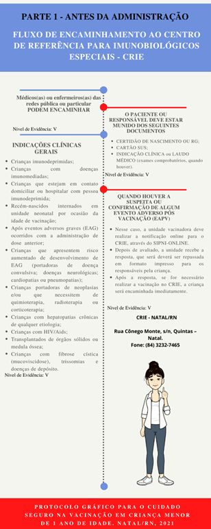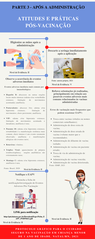 Em suma, ressalta-se a relevância do protocolo gráfico, pois visa a organização do processo de trabalho da equipe de enfermagem com vistas ao cuidado seguro na vacinação de crianças menores de 1 ano.