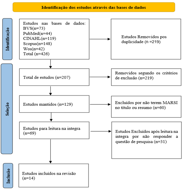 O processo de seleção dos estudos seguiu as recomendações do checklist do Statement for Reporting Systematic Review and Meta-Analyses of Studies – PRISMA, e foi estruturado o fluxograma preconizado conforme apresenta a Figura 1.
