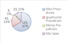 Além disso, constatou-se que entre os 34 usuários do CE, 25 o consideram mais prejudicial que o convencional, porém, ainda assim fazem o seu uso. Outro fato encontrado é que dentre os 42 participantes que possuem curiosidade, almejam utilizar e, apesar de não saberem, mas que talvez usariam o CE, acham, em sua maioria, que este dispositivo é mais prejudicial, o que equivale a aproximadamente 21% do total dos entrevistados.