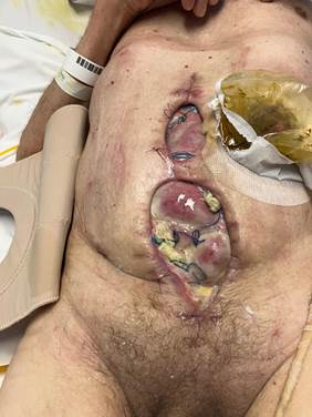 The patient is a 66-year-old male with a history of intestinal cancer and metastases in the lungs and brain. Under palliative care, he presented with an abdominal surgical wound resulting from a laparotomy, which included tumor removal and the creation of an active colostomy. The surgery had been performed 45 days before the initiation of NPT. For pain management, the patient was receiving morphine and tramadol, along with ondansetron for nausea. He had previously undergone treatment with both oral and injectable chemotherapy.