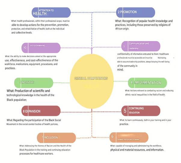 Figure 2 – Concept map of the dimensions and sub-dimensions of competencies related to maternal and child health and the health of the Black population.