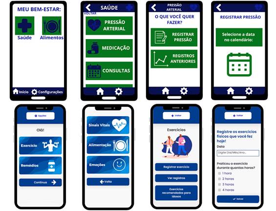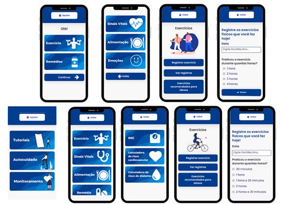 Despite the challenges faced, such as initial resistance from participants during the testing phase, the positive results obtained highlight the relevance of the approach adopted. The implemented adjustments demonstrated significant potential to improve the user experience, making the technology more accessible and intuitive. Furthermore, these improvements contribute to facilitating the adoption of the application in the daily lives of the elderly, promoting more efficient use aligned with their needs. These results reinforce the importance of expanding initiatives that promote digital inclusion and health education for the elderly population. With continuous improvements, it is expected that this technology can be incorporated into health services, strengthening self-care and optimizing the care provided, reaffirming the importance of investing in health-oriented technologies, contributing to a more efficient, integrated, and user-centered system.