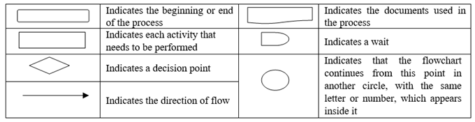 Table 2 – Schematic representation of the symbols that make up a flowchart