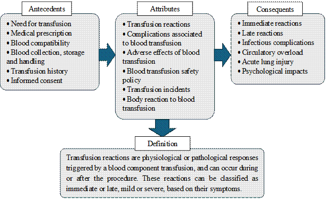 After analyzing the concepts, identifying the attributes and constructing the model and contrary cases related to the applicability of the concept of transfusion reactions, a definition was drawn up covering the results of the conceptual analysis.