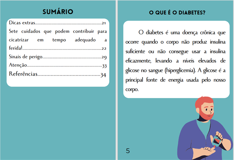 Após um rigoroso processo de avaliação, a cartilha foi aprovada com sucesso, atendendo às necessidades de conteúdo sobre cuidados com úlceras e curativos no pé de pessoas com diabetes, em uma linguagem acessível e simplificada. Com base nas observações e sugestões dos juízes durante a validação, algumas ilustrações e textos foram modificados para torná-los mais atrativos e eficientes.
