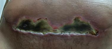 Legenda: ferida operatória com sinais de hipóxia tecidual.